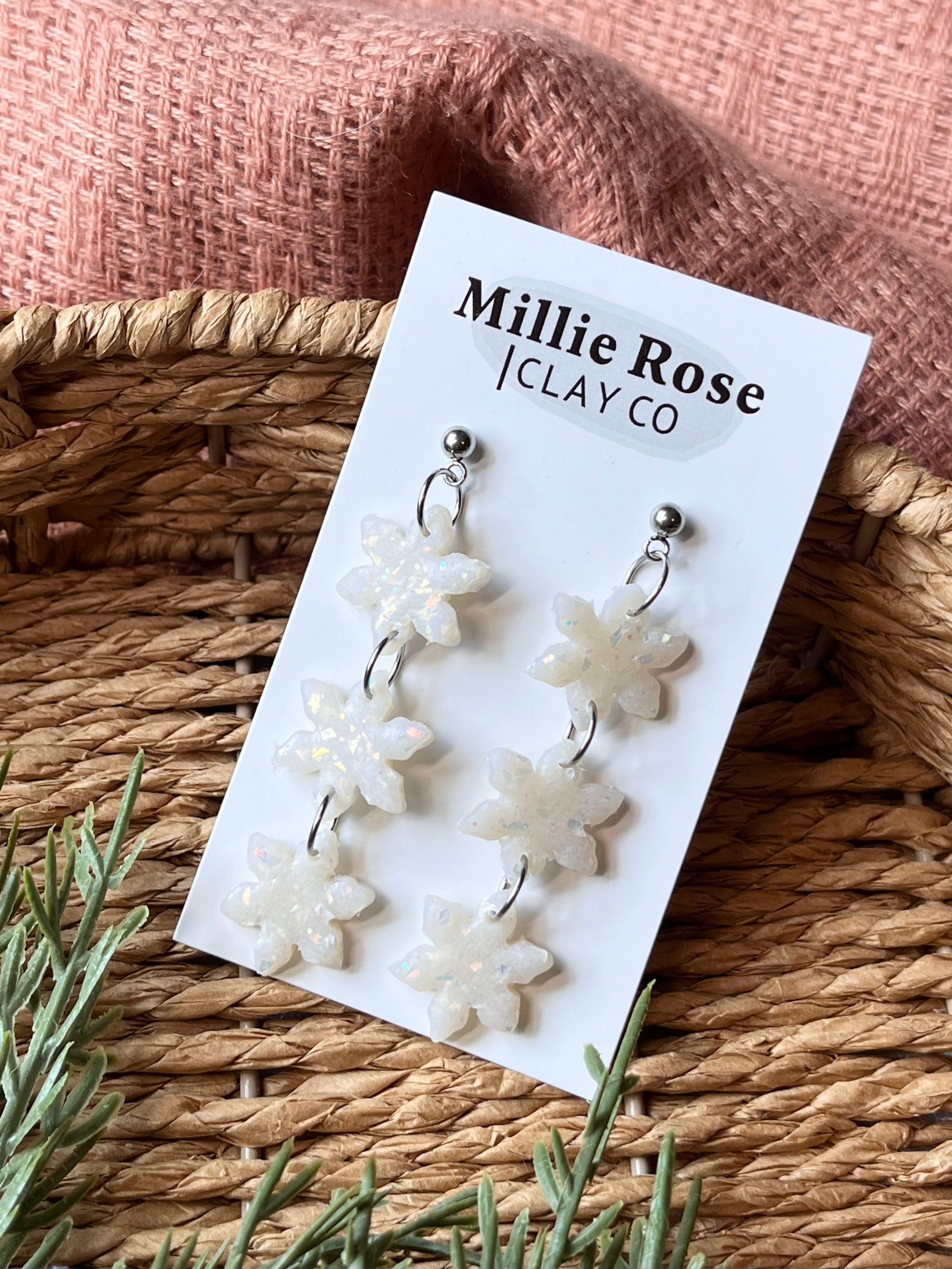 Opal Triple Snowflake Dangle w/ Silver Ball Stud
