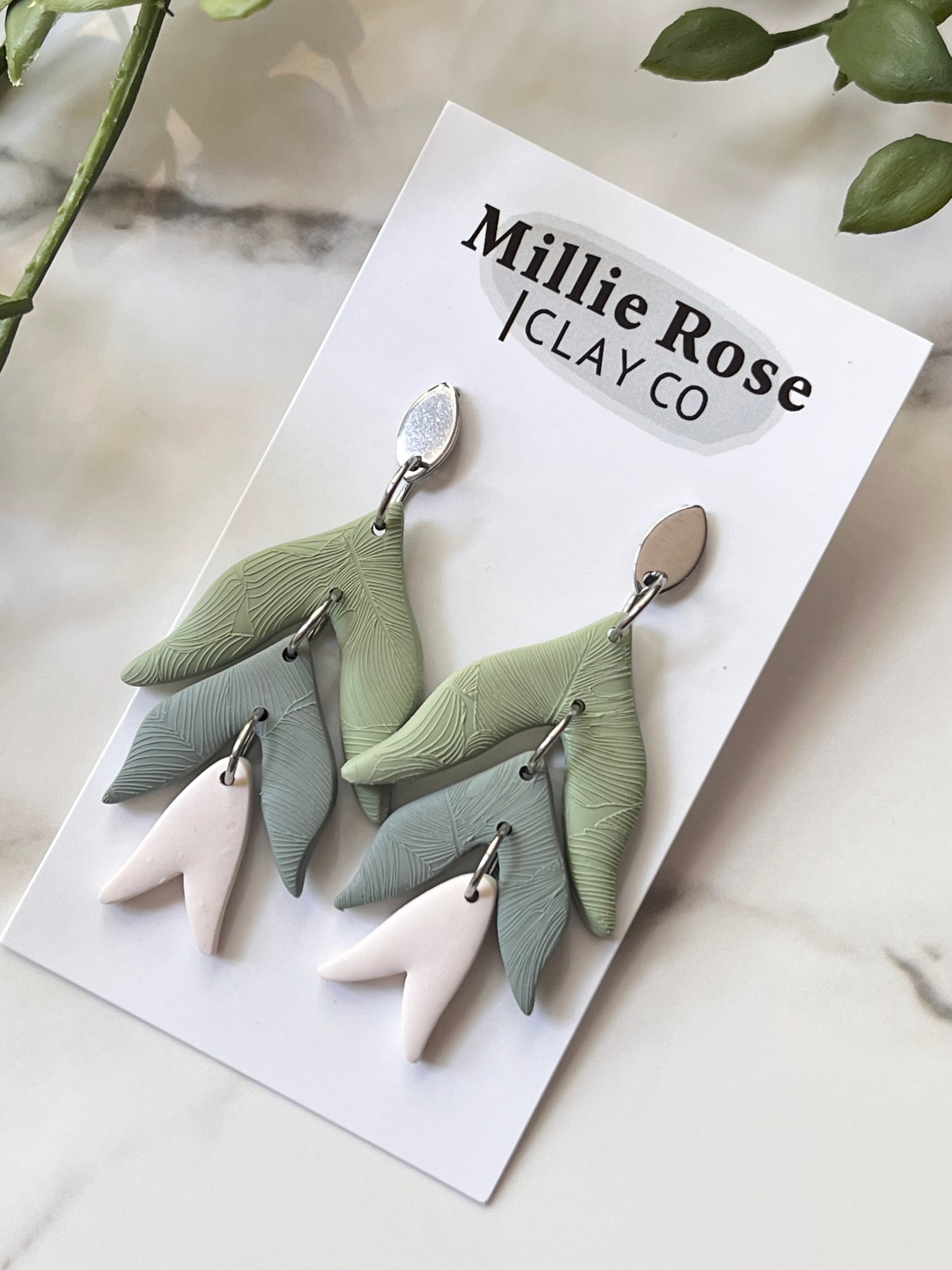 Tulip Drop Dangle w/ Silver Teardrop Stud (Cream)